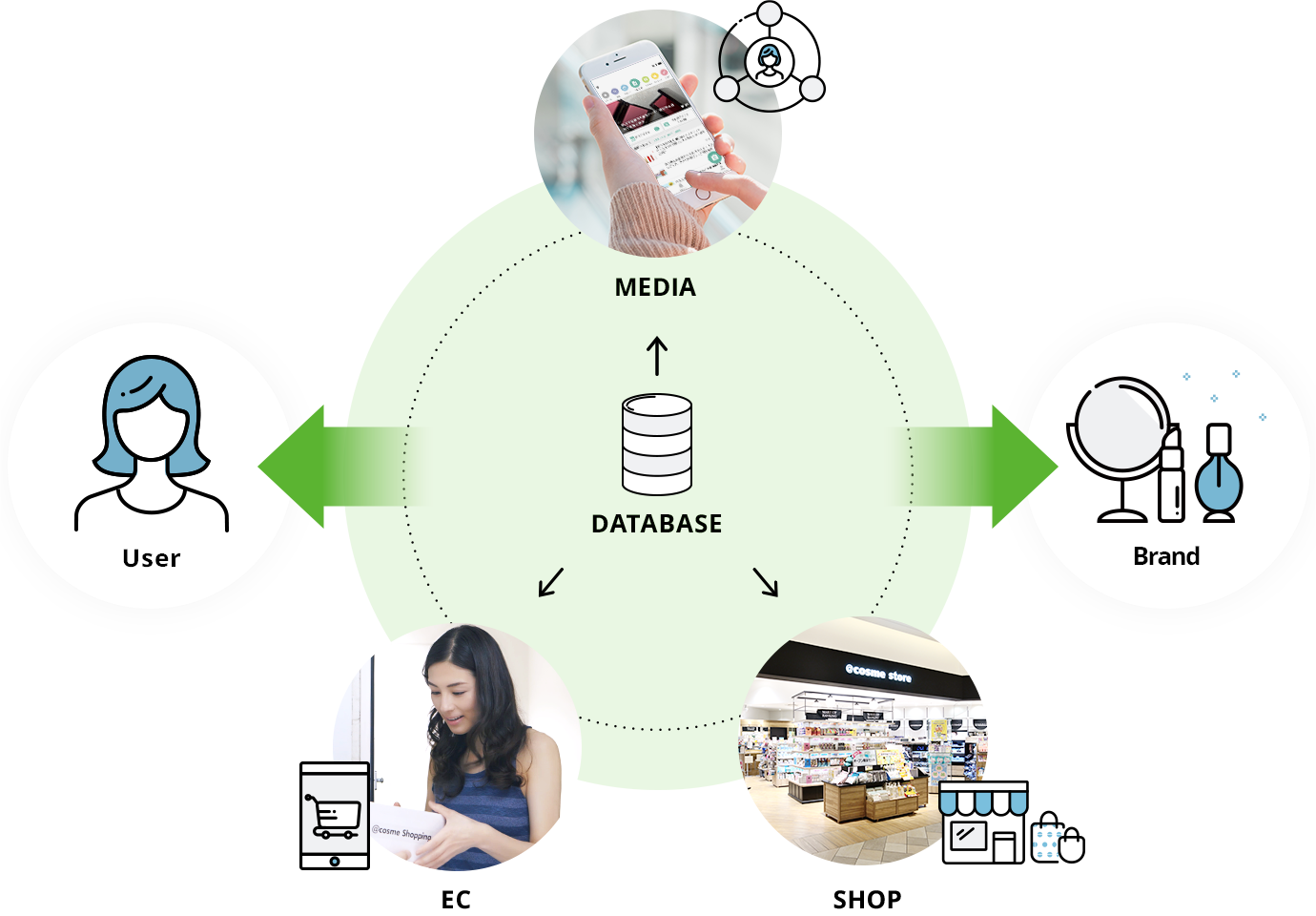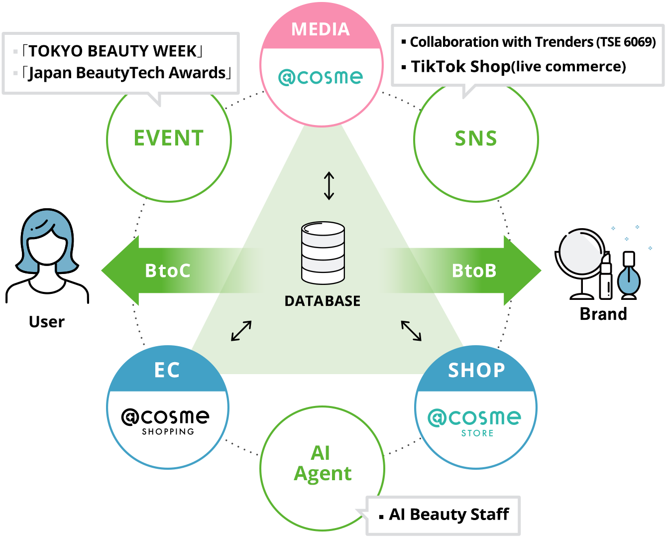 Leveraging our proprietary database containing a vast amount of beauty product and user information, we effectively combine online and offline channels, such as our brick-and-mortar @cosme STORE and e-commerce @cosme SHOPPING platform, to develop a vertically integrated business in the beauty sector. In addition, we also provide marketing support services that increase touchpoints between brands and users.