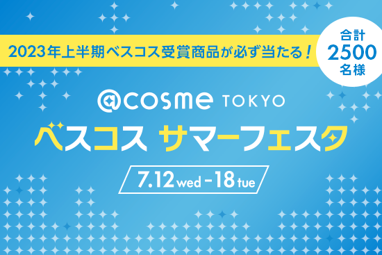 @cosme、フラッグシップショップ「@cosme TOKYO」で、2023上半期ベストコスメアワードを体験できるポップアップイベント「@cosme TOKYOベスコスサマーフェスタ」を7/12より開催!